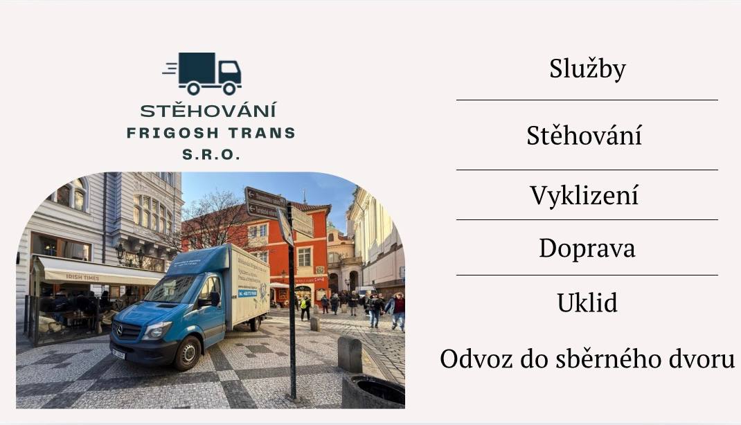 Máme bohaté zkušenosti s jakkoliv složitým stěhováním, V závislosti na vašich potřebách jsme připraveni zorganizovat stěhování na klíč, Vašeho domu, bytu, kanceláře atd.